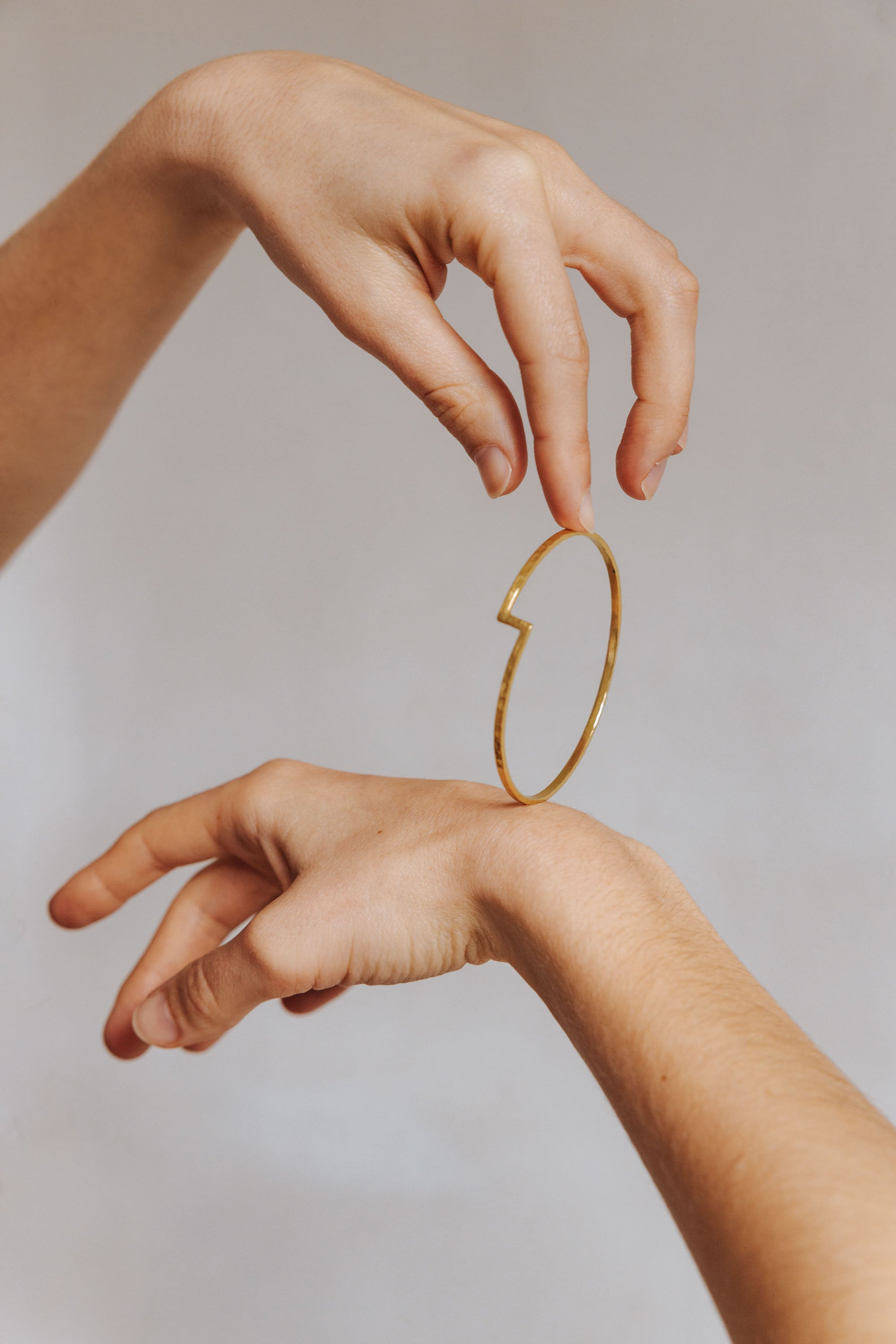 Speziell Messing ist ein extrem weiches Material. Einige unserer Schmuckstücke haben daher keinen extra Verschluss und werden zum Anziehen einfach kurz auf- und wieder zugebogen. Auf die gleiche Weise kannst du ein Teil, das sich durchs Tragen oder Verstauen verbogen hat, wieder zurück in Form bringen.